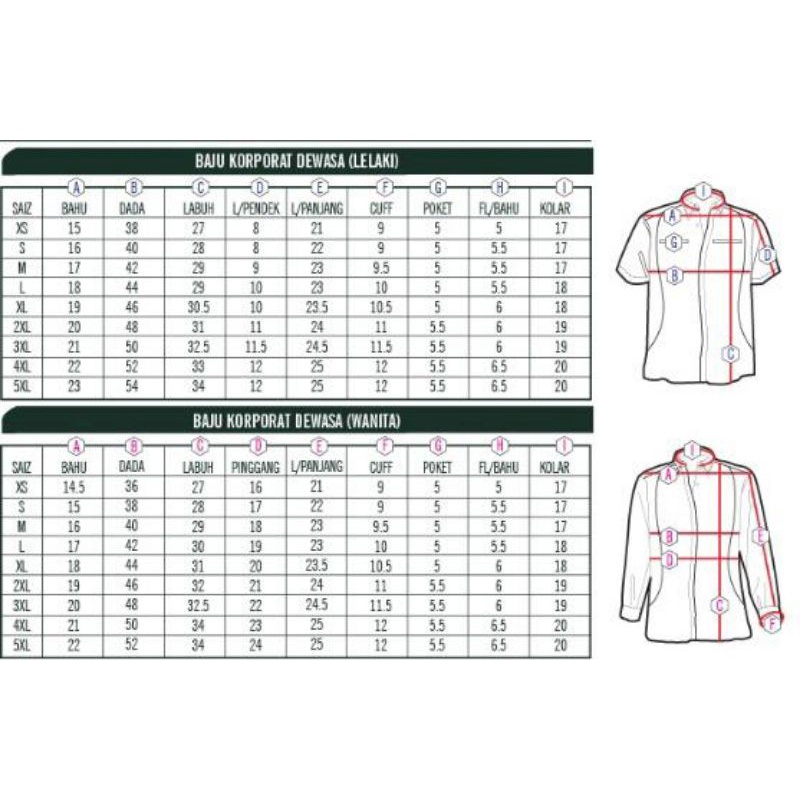 Ukuran Saiz Baju Korporat
