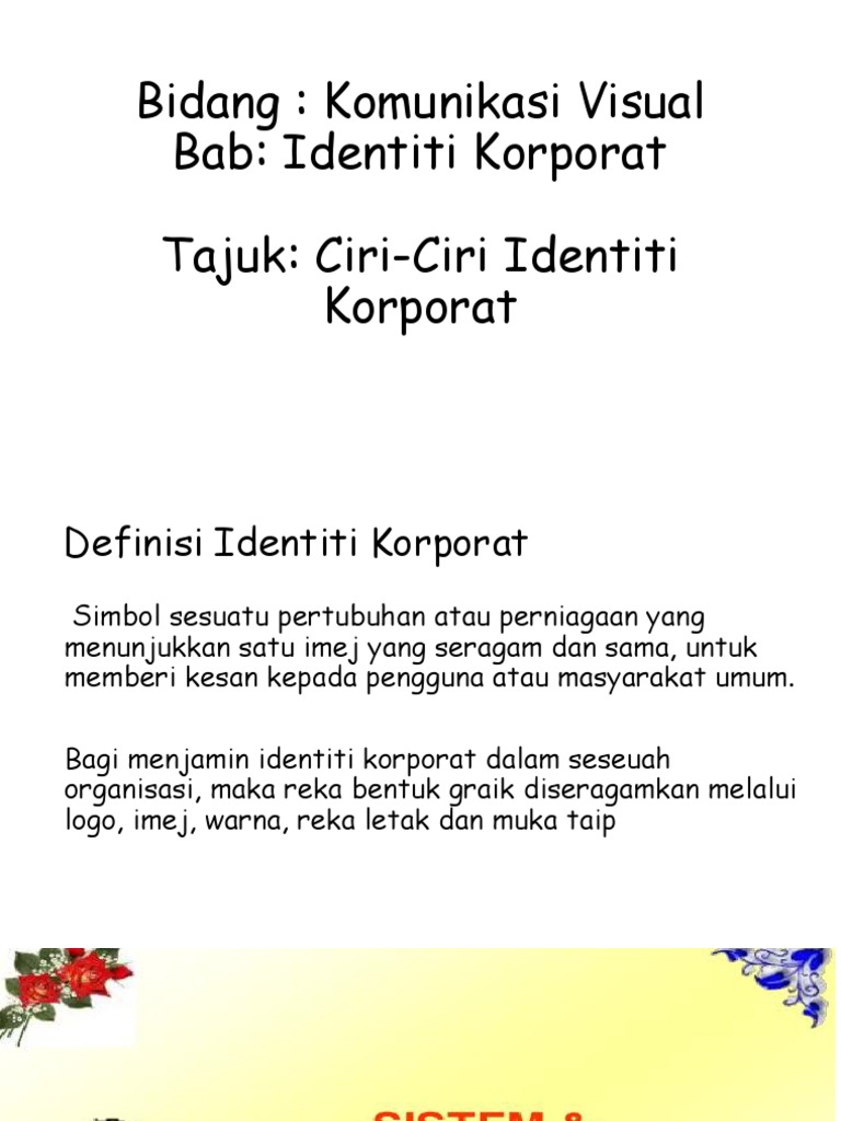 View DEFINASI IDENTITI KORPORATdocx from BUSINESS MISC at Universiti Utara Malaysia. Corporate Identity entsteht wie die Identität. PERANCANGAN CORPORATE IDENTITY DAN PROMOSI DESTINASI AGROWISATA SALAK PONDOH DESA BANGUNKERTO TURI SLEMAN YOGYAKARTA Mega Ekklesia Putrihadi1 Ahmad Adib 2 Ani Wijayanti Suhartono 3 13 Program Studi Desain Komunikasi Visual Fakultas Seni dan Desain Universitas Kristen Petra Surabaya 2Jurusan Desain Komunikasi Visual Fakultas.