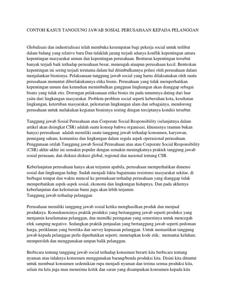 Contoh Kasus Tanggung Jawab Sosial Perusahaan Kepada Pelanggan Pdf